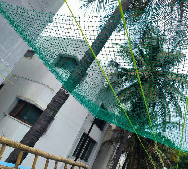 OV Pigeon Nets provides strong coconut tree safety nets, preventing injuries and property damage from falling coconuts. These durable nets ensure safety and peace of mind for residents in Bangalore.